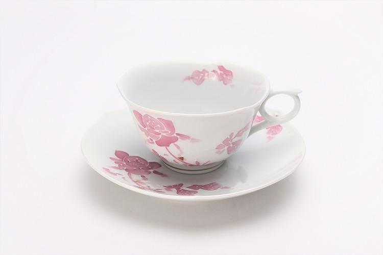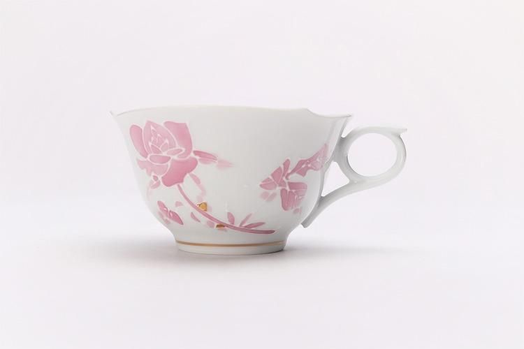 〇文山窯 バラ(マロン) 輪花コーヒーC/S