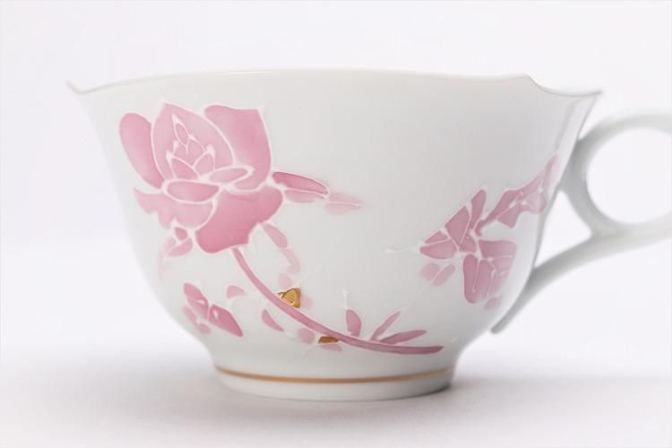 透き通るような白磁に描かれた立体的なバラは上品で高級感があります。