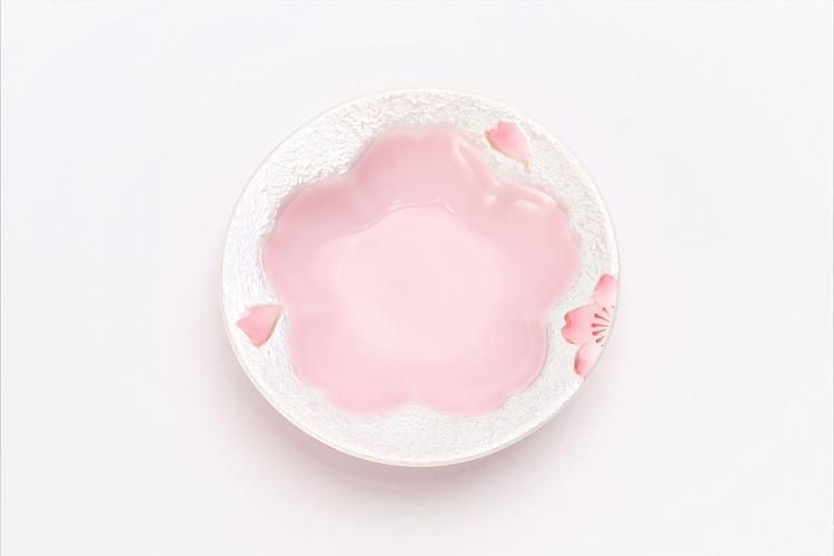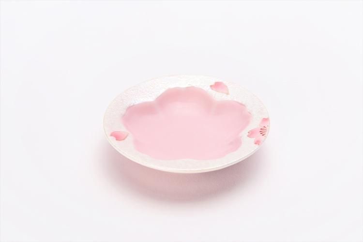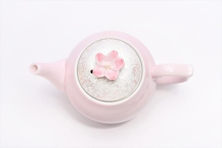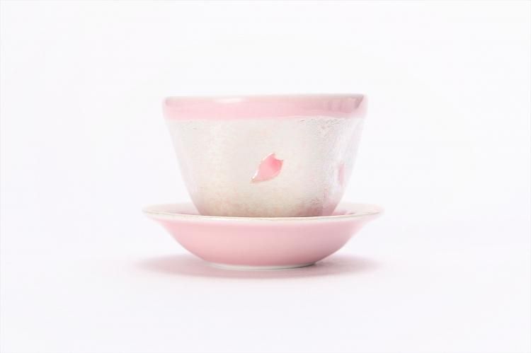 ☆田清窯 薄ピンク釉虹彩桜 茶器セット(プレート付)