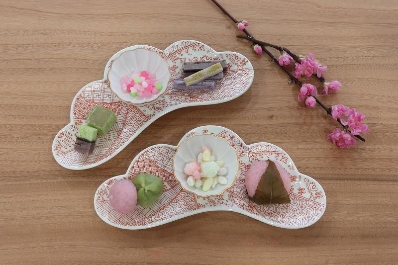 •  > 〇幸楽窯×MARUKEIオリジナル 錦赤銀彩祥瑞松葉形前菜皿