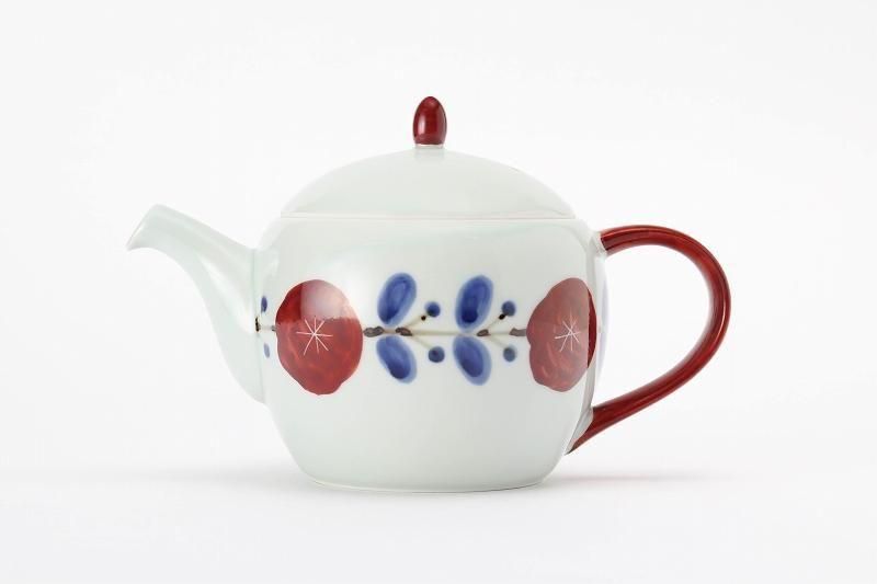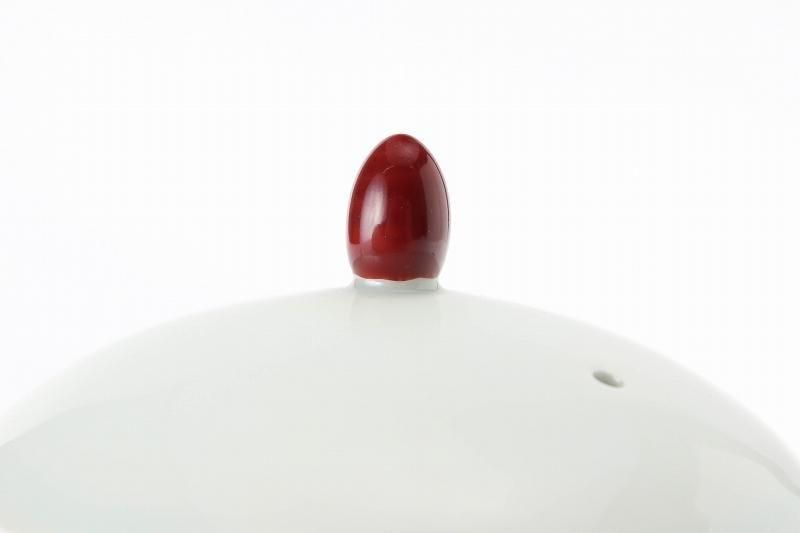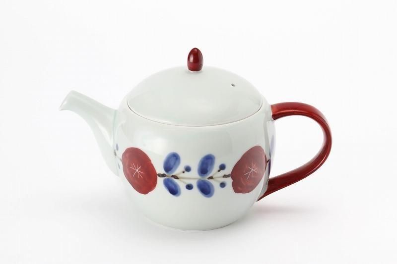 赤の花が愛らしいポットで、食卓をほっこりとした和んだ空間にしてくれそうです。