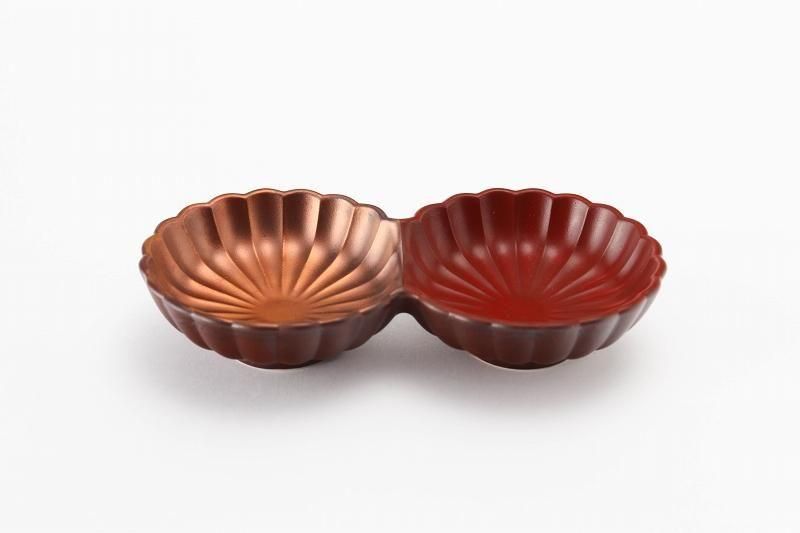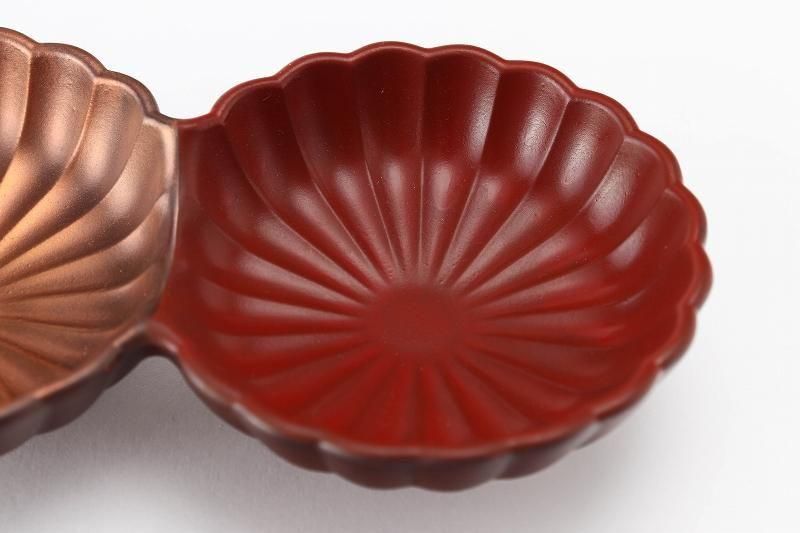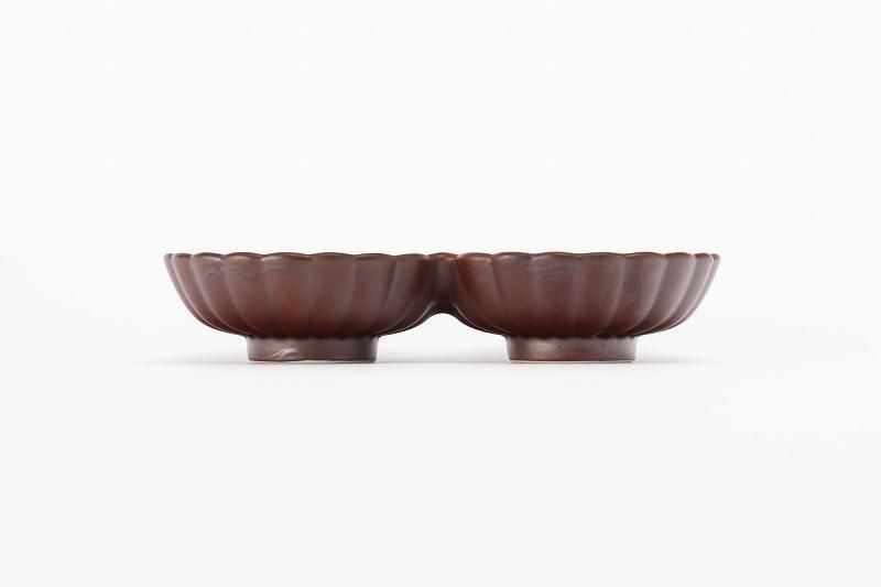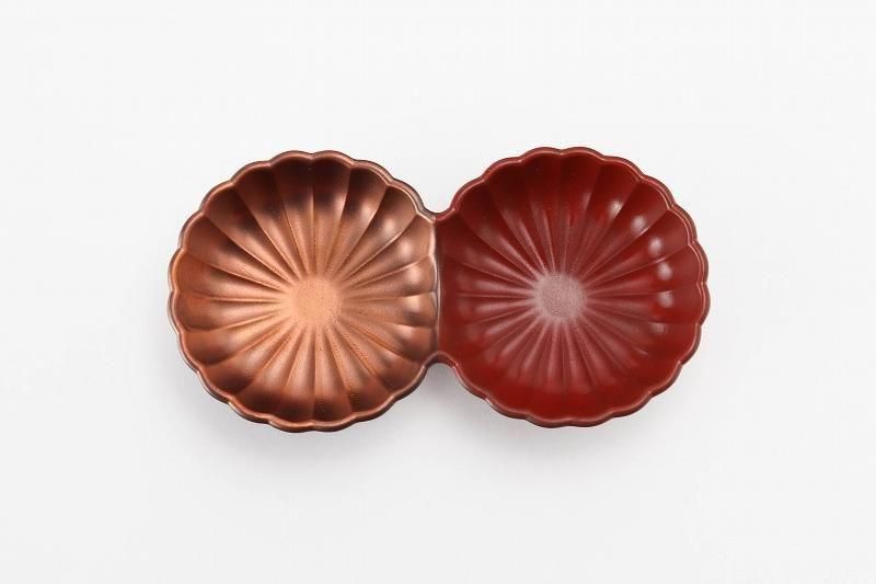 •  > ☆伝平窯 銅赤 菊型二連皿