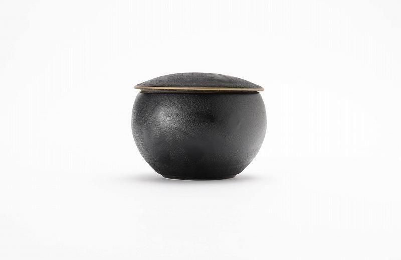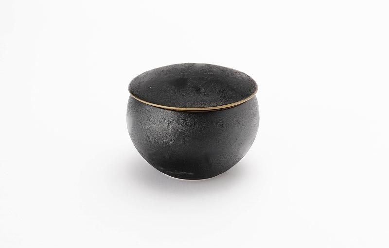 ★【20%OFF】アウトレット 焼締ツヤ黒雲金丸蓋物